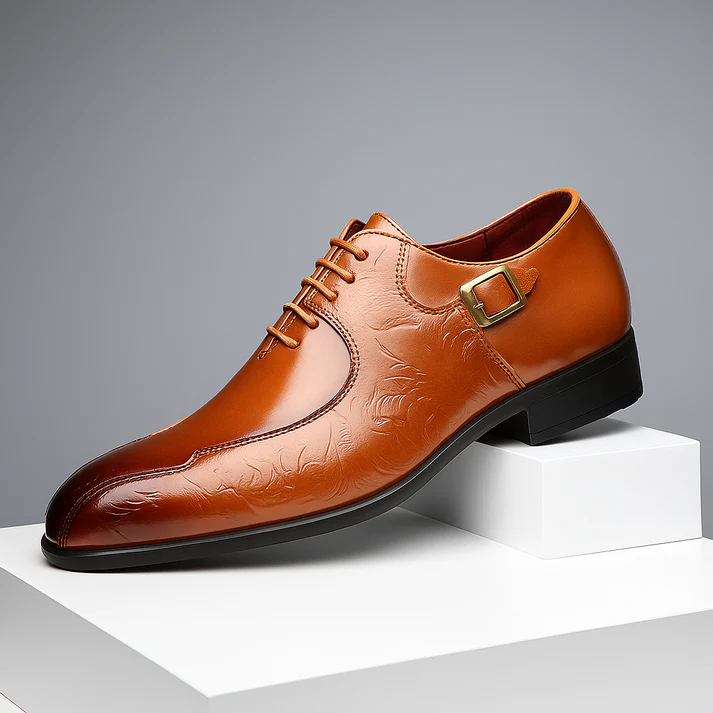 The shoes your suit's been waiting for. A testament to timeless craftsmanship. The Maison Rhevard Classic Oxfords are meticulously crafted from polished genuine leather, featuring engraved detailing and a dual lace–buckle design. With a sleek silhouette and cushioned comfort, they bring modern confidence to classic tailoring.